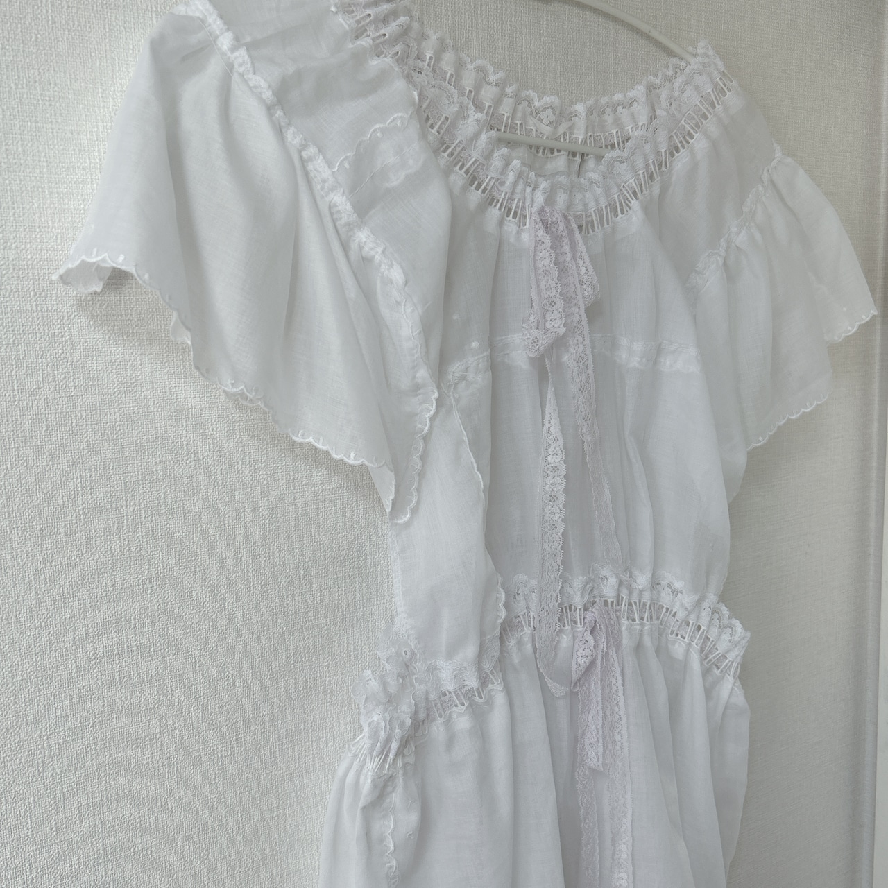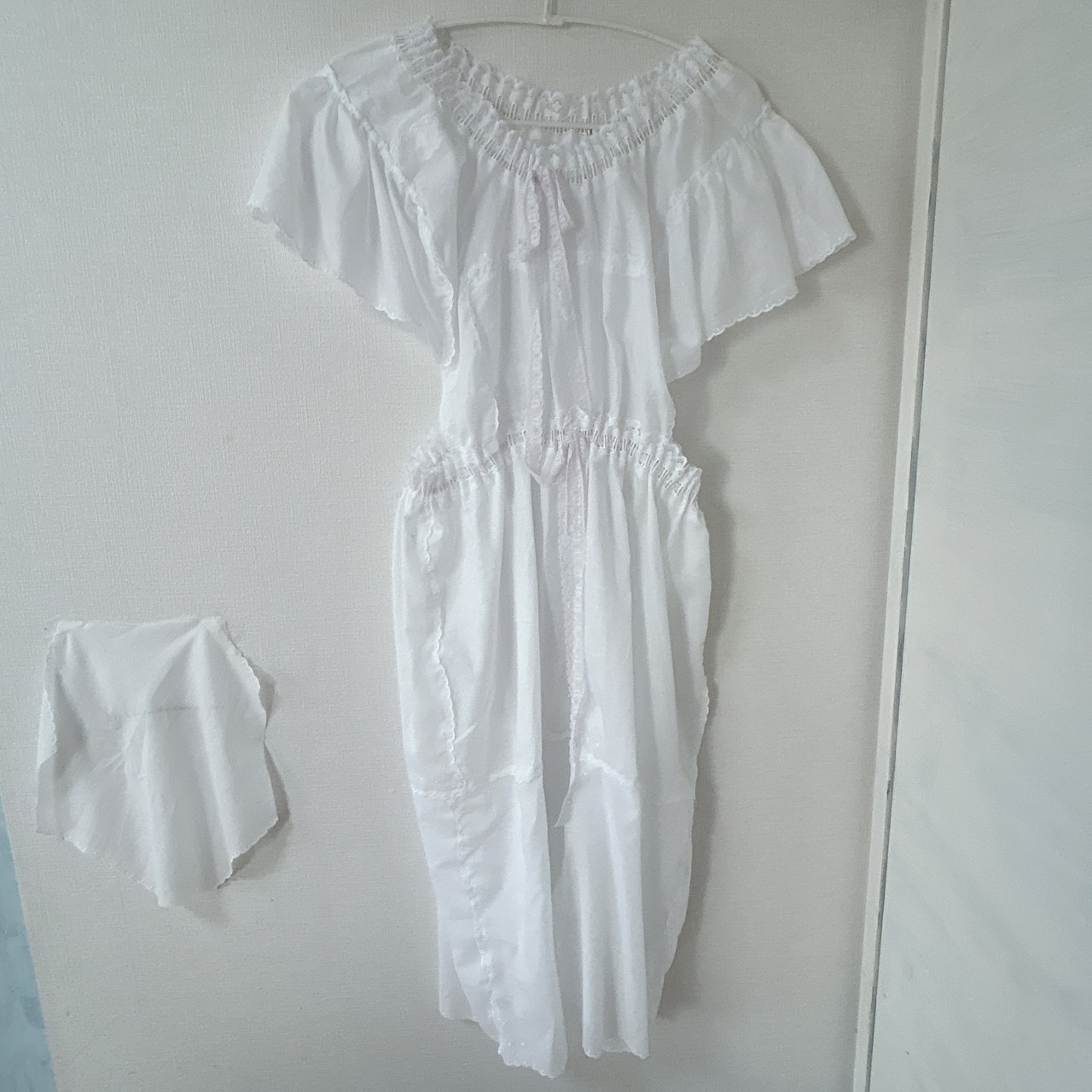 ゴム素材のおリボンやたくさんのハンカチやレースでできた dressになります。