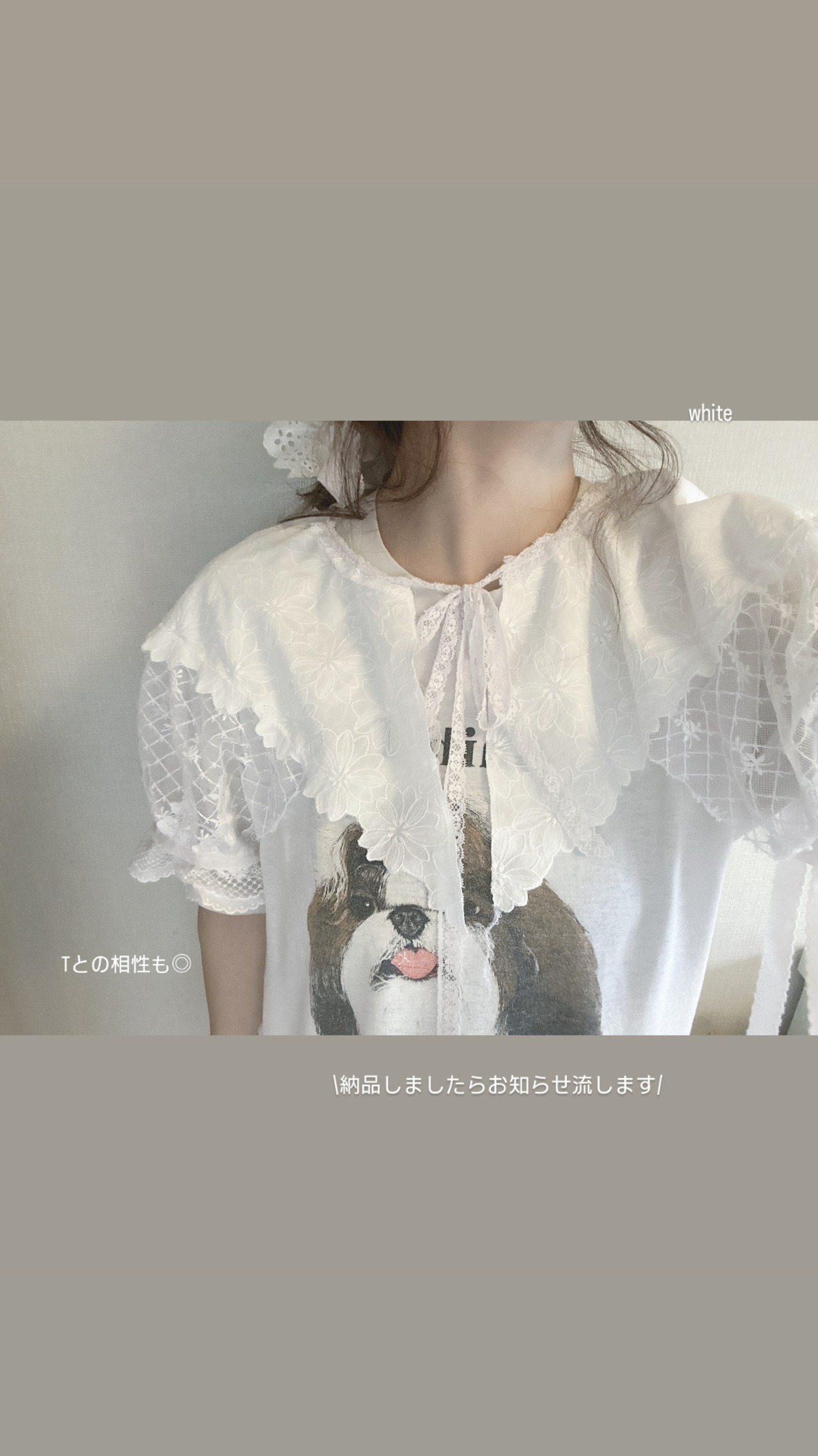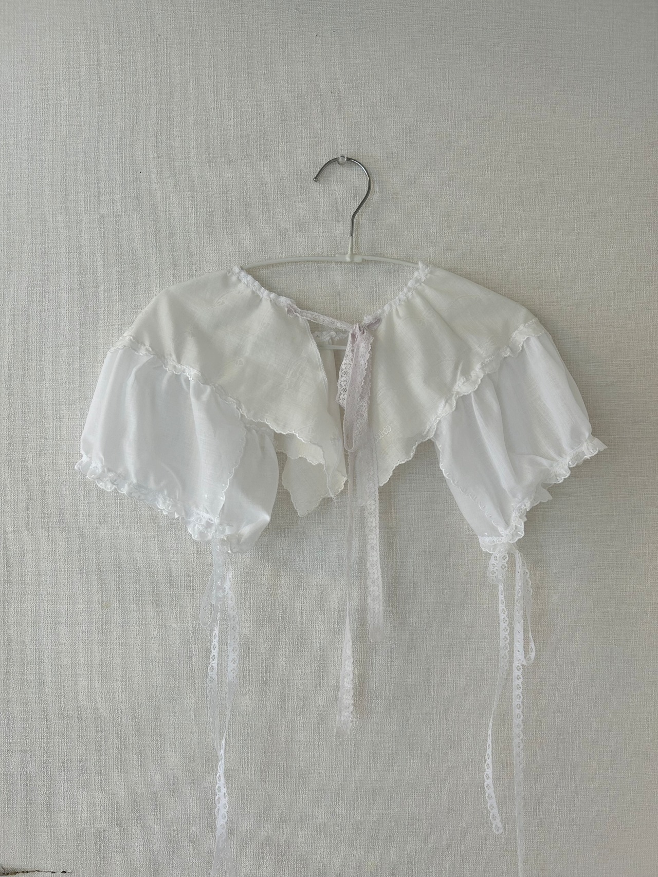 袖の部分もおリボンで調節可能なのでどのお洋服の上からでも楽しめます。